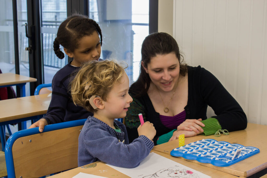 En même temps que leurs camarades découvrent de nouveaux sons, les enfants sourds découvrent donc un code différent. Ils comprennent ainsi qu’un nouveau son entraîne une nouvelle façon de coder, et que ces nouveaux sons appartiennent à une nouvelle langue : l’anglais !